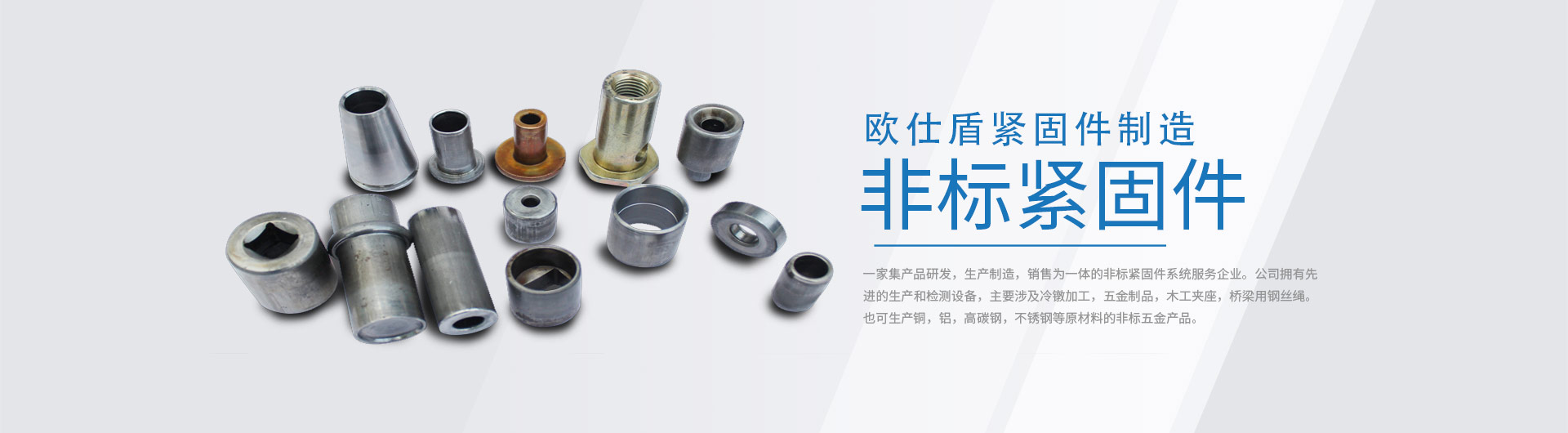 宜興市歐仕盾緊固件制造有限公司坐落在太湖之濱——無錫宜興。是一家集產品研發(fā),生產制造,銷售為一體的非標緊固件系統服務企業。公司擁有 的生產和檢測設備,主要涉及冷鐓加工,五金制品。也可生產銅,鋁,高碳鋼,不銹鋼等原材料的非標五金產品。公司創始人憑借著對技術的狂熱追求以及數十年對產品工藝的積累,在五金制造行業占據了一席之地;對于客戶的需求高、中、低端批量五金件有著特有的加工工藝及成本管控,為客戶做到真正的成本節(jié)約;可對于客戶新產品的研發(fā)作出及時的配合調整!我的優(yōu)勢——您可以直接和技術迅速準確的我們描述您對零件的需要,我們的精準服務將給您帶來驚喜!